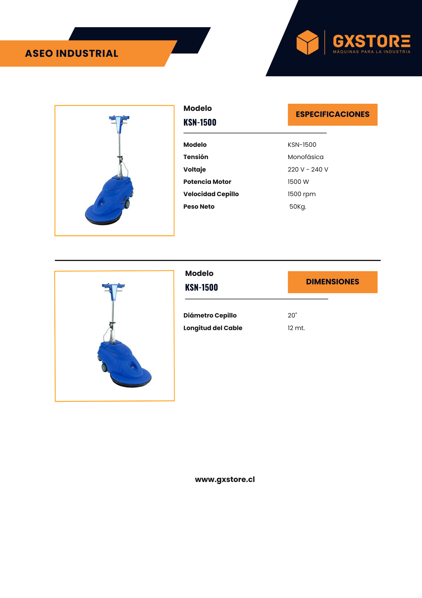 La Abrillantadora Kosner KSN-1500 de 20 pulgadas y alta revolución es ideal para grandes superficies. Con un motor de 1500W, opera a un voltaje de 220-240V y alcanza una velocidad de 1500 rpm. Su disco de 20 pulgadas (50 cm) permite abarcar áreas extensas rápidamente. Pesa 50 kg y tiene un cable de 12 metros para facilitar su maniobrabilidad. Incluye un porta pad y está diseñada para ser utilizada fácilmente por cualquier persona, garantizando un abrillantado rápido y eficaz.
