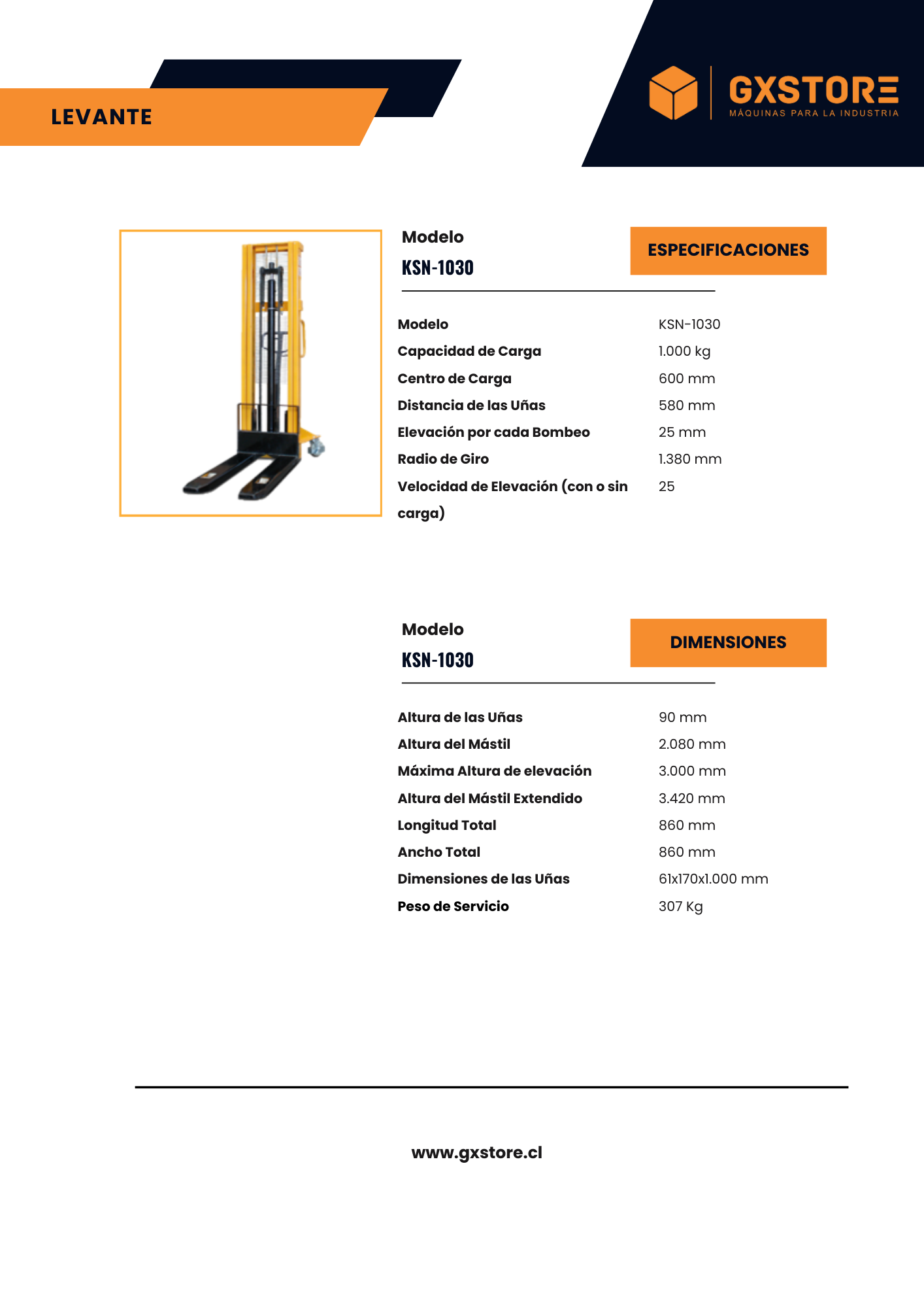 El Apilador Kosner KSN-1030 es la herramienta perfecta para optimizar las operaciones de almacenamiento, garantizando un manejo seguro y eficiente de sus cargas.