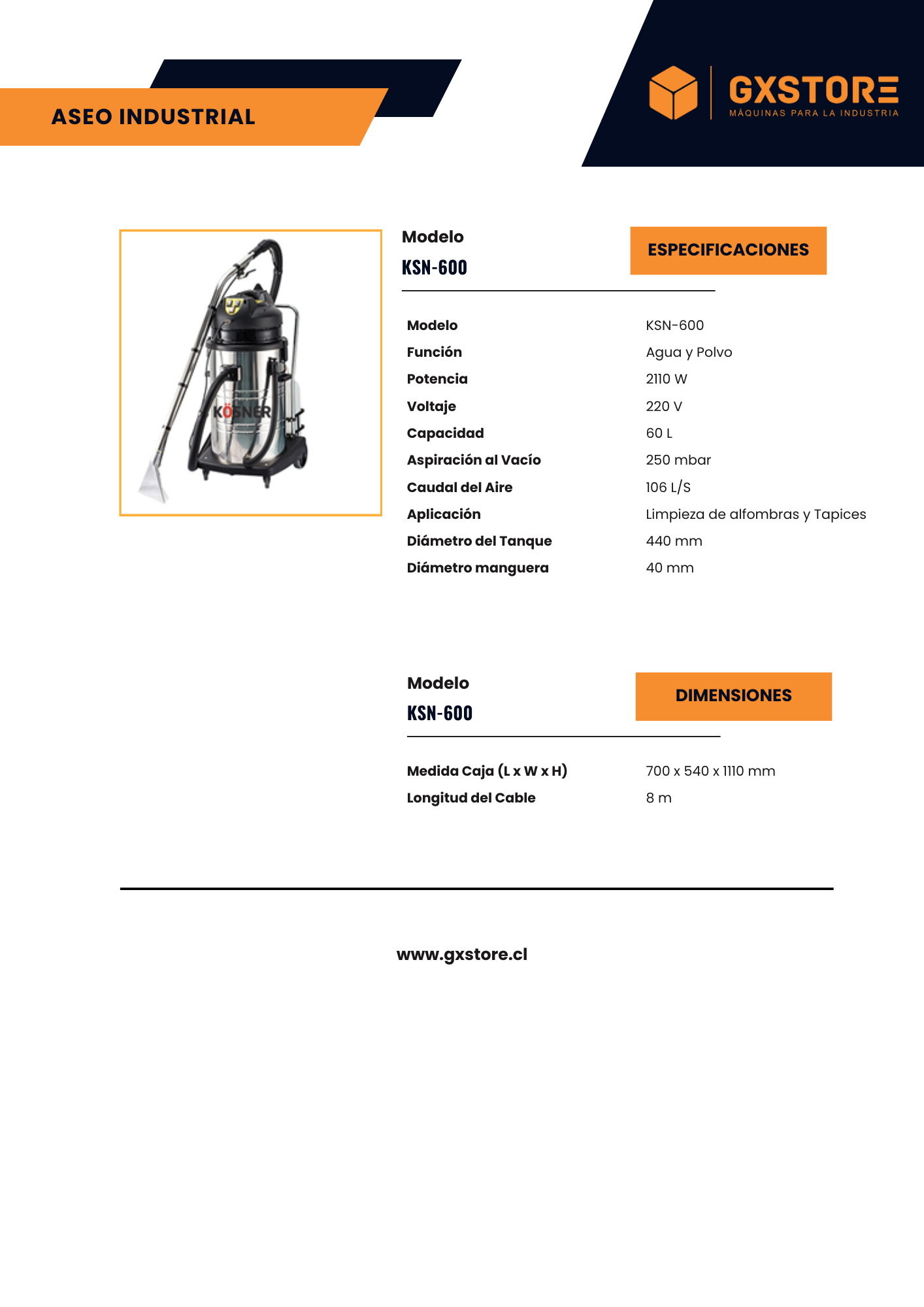 La Aspiradora Lavadora de Alfombras y Tapices Kosner KSN-600, con una capacidad de 60 litros y una potencia de 2110W, es una herramienta robusta diseñada para la limpieza profunda de alfombras y tapices. Equipada con un tanque de acero inoxidable resistente y un poderoso motor silencioso, ofrece una aspiración potente y eficiente. Con características como cuatro ruedas para facilitar su movimiento, diámetro del tanque de 440 mm y longitud del cable de 8 metros, garantiza comodidad y versatilidad en su uso. Además, viene con un conjunto completo de accesorios para una limpieza óptima, convirtiéndola en una opción ideal para hogares, oficinas e industrias que buscan resultados profesionales en la limpieza de alfombras y tapices.