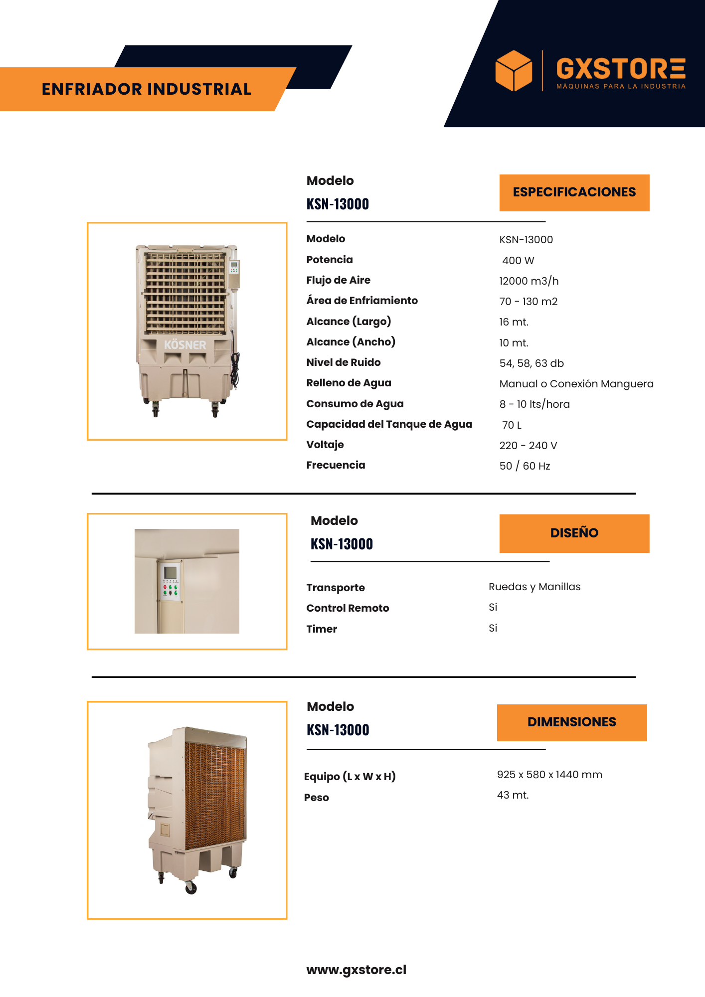 Características Enfriador de Aire Evaporativo Kosner KSN-13000