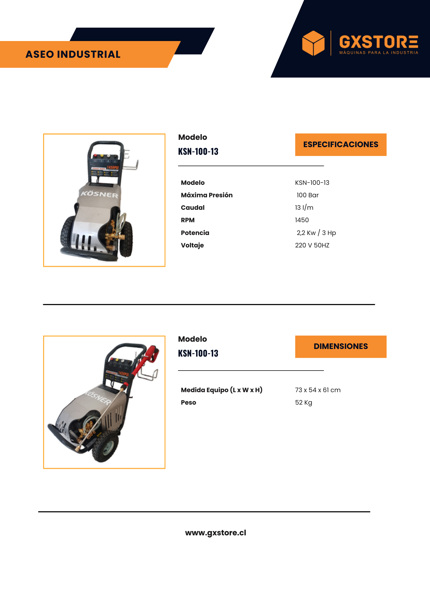 En resumen, la Kosner KSN-100.13 es una opción ideal para aquellos que buscan una hidrolavadora industrial monofásica confiable y resistente, capaz de ofrecer resultados de limpieza eficientes y consistentes.