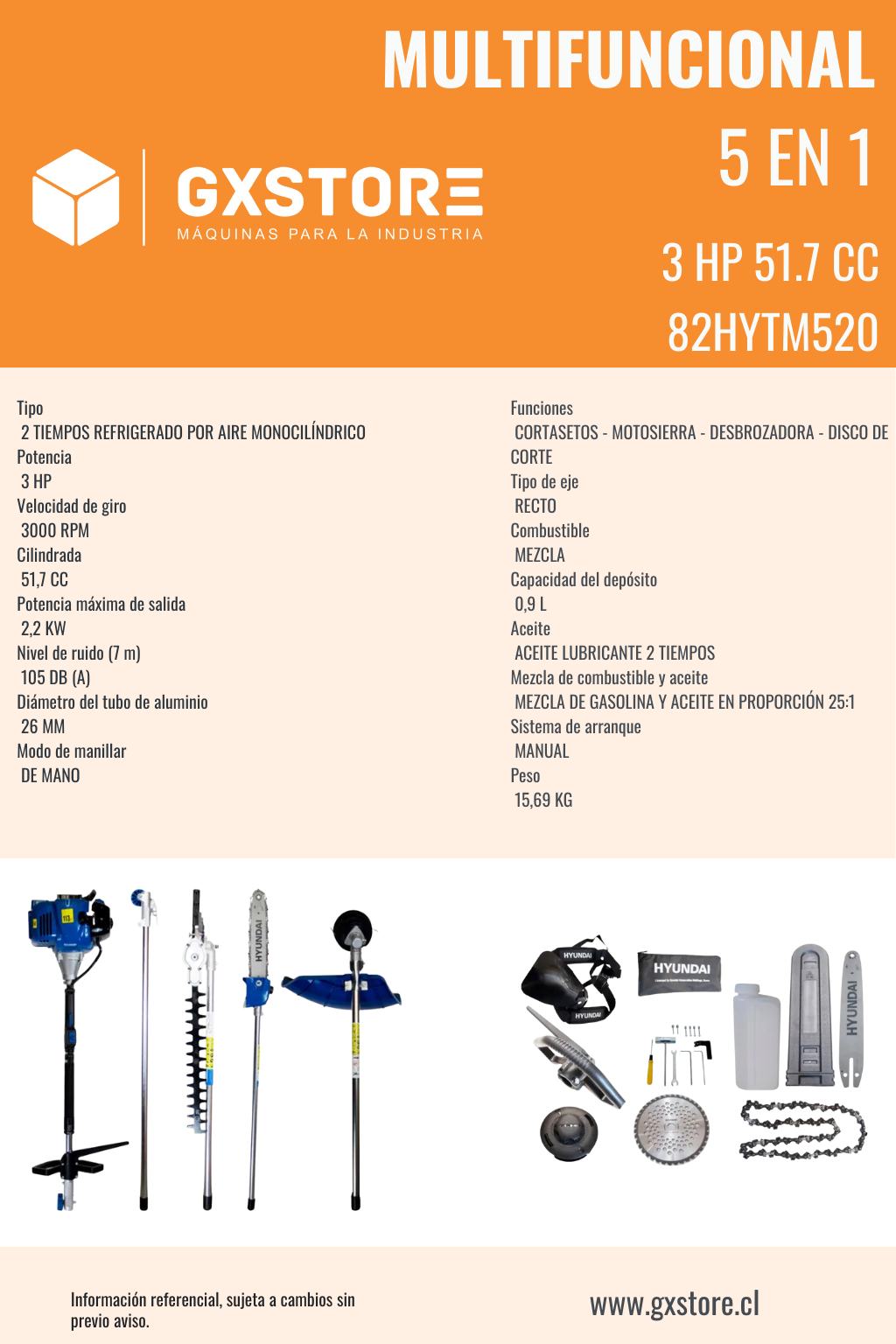 Multifuncional Hyundai 5 en 1 82HYTM520 3 HP 51.7 CC