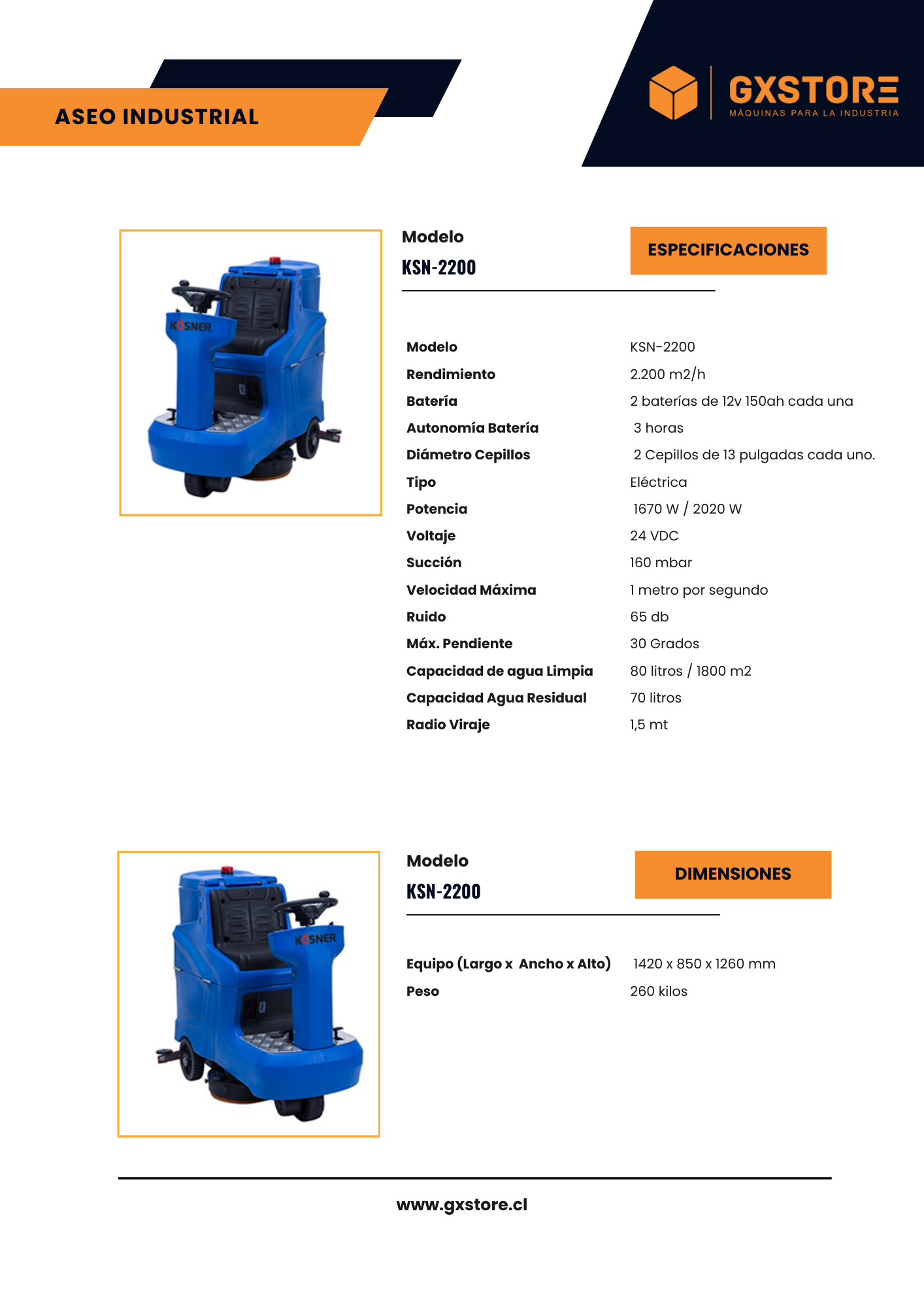 La Vacuolavadora Hombre a Bordo Kosner KSN-2200 es una potente herramienta diseñada para la limpieza eficiente de grandes superficies. Con un rendimiento de 2.200 m2/h, esta máquina garantiza resultados rápidos y efectivos. Equipada con dos baterías de 12V 150Ah cada una, ofrece una autonomía de hasta 3 horas de trabajo continuo. Con un diámetro de cepillos de 13 pulgadas cada uno, esta vacuolavadora eléctrica cuenta con una potencia de 1670 / 2020 W y un voltaje de 24 VDC, proporcionando una succión potente de 160 mbar. Su capacidad de agua limpia de 80 litros y capacidad de agua residual de 70 litros la hacen ideal para trabajos extensos sin necesidad de recargar agua. Con características como un radio de viraje de 1,5 metros y una velocidad máxima de 1 metro por segundo, ofrece una maniobrabilidad excepcional. Diseñada para uso industrial o comercial, esta vacuolavadora es perfecta para limpiar pisos de estacionamientos, colegios, supermercados, aeropuertos y más. Con su capacidad de succión de líquidos y su diseño robusto, garantiza una limpieza eficaz en una variedad de entornos.