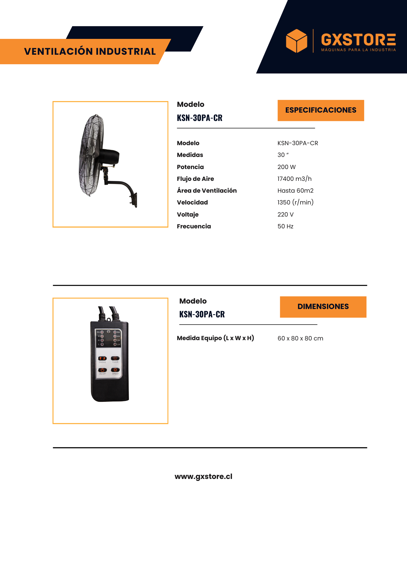 Ventilador de Pared a control remoto KSN-30PA-CR Industrial 30